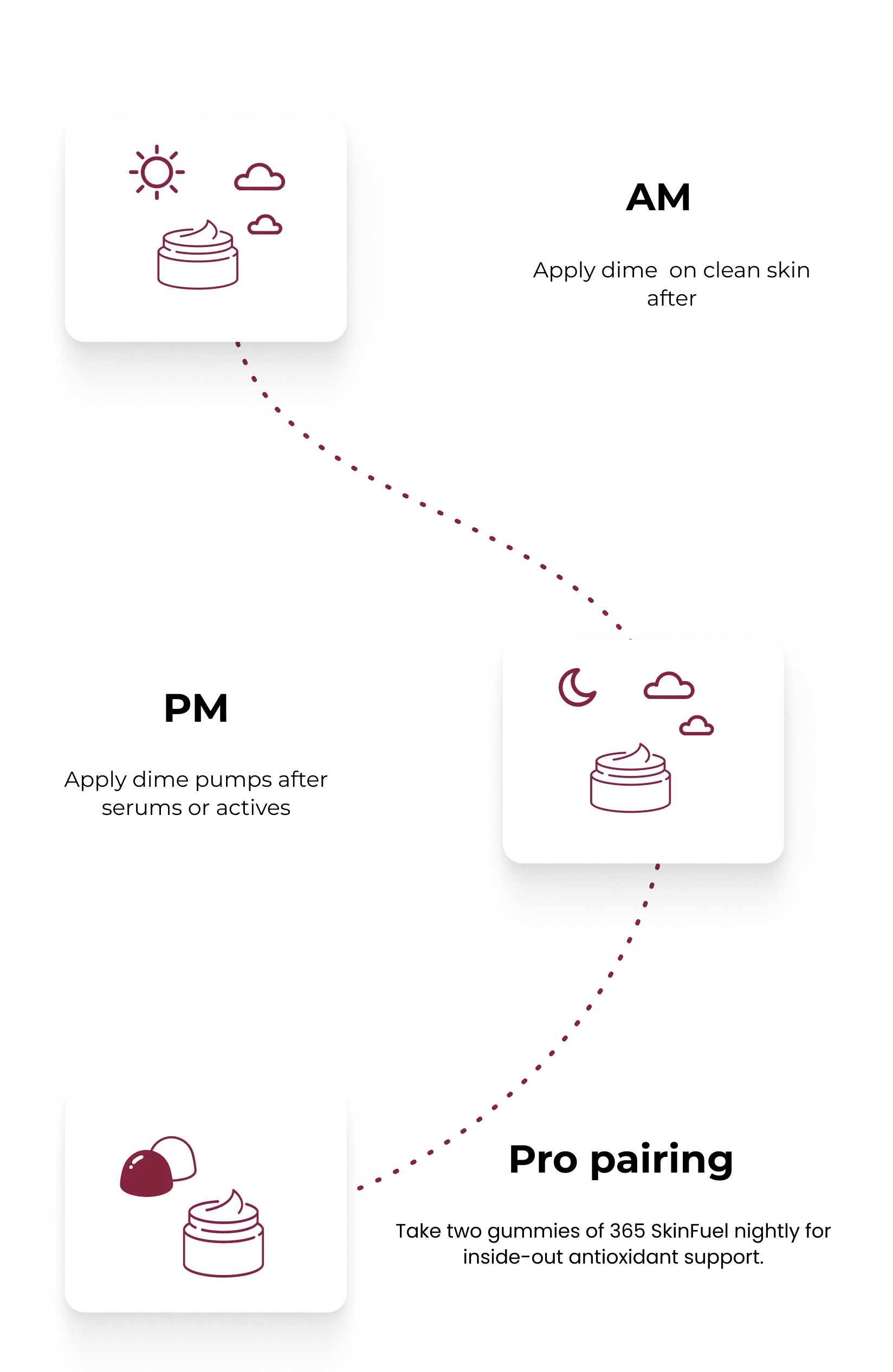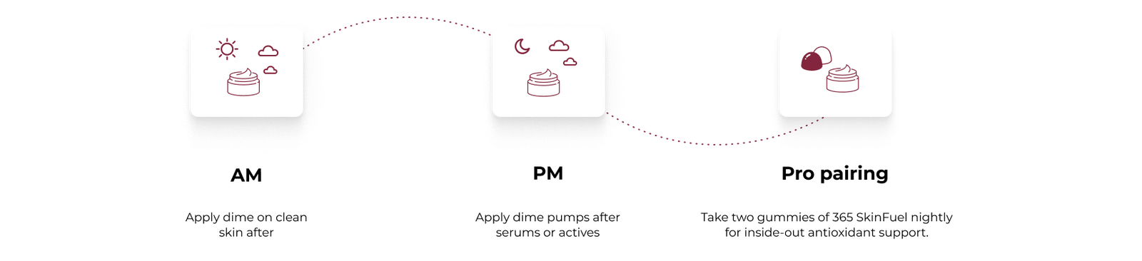 - Antioxidant Red Algae (astaxanthin) — your daily shield against UV/pollution free radicals and photo-oxidative stress that visibly reduces redness and dullness, cuts down “skin-acting-up” days and keeps tone clearer and more even-looking.
